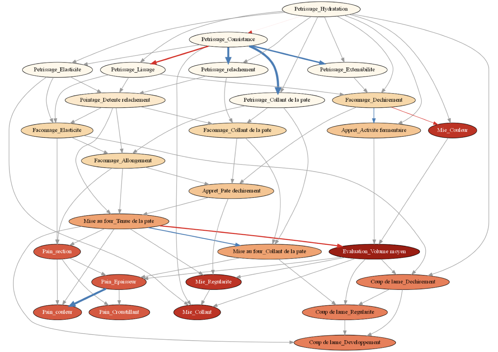 The internship work is part of a research project [1] which aims to develop, in collaboration with stakeholders in the cereal sector, a tool that predicts the quality of wheat from data collected each year in order to better anticipate the difficulties caused by climate events. A knowledge base is built using an existing ontology, from which Bayesian networks are generated (Figure 1) and then refined with expert knowledge.